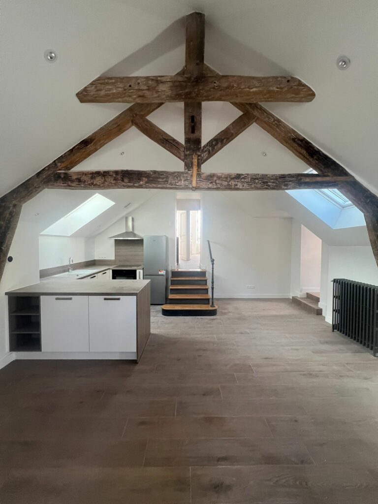 • Aménagement des combles et reprise de la charpente pour la création d’un studio